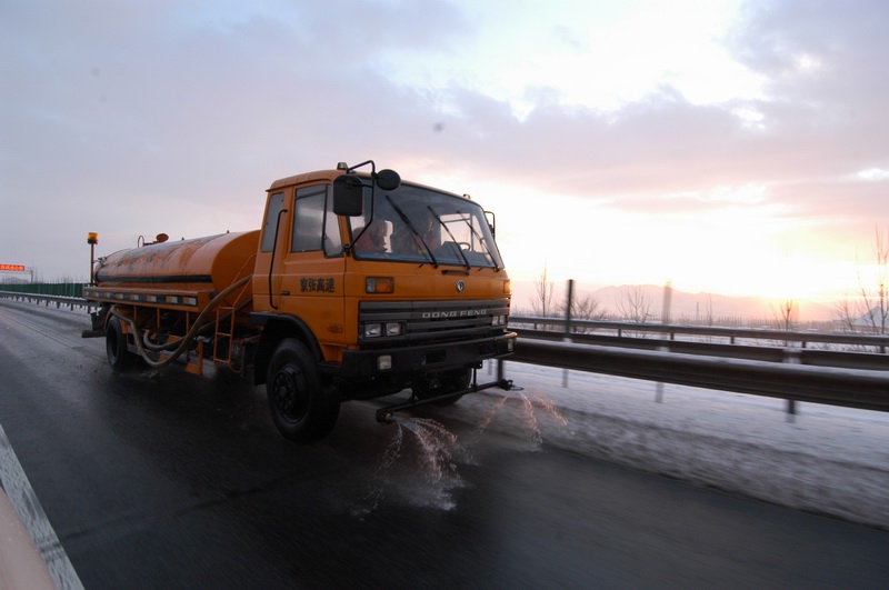 從11月10日早晨開(kāi)始,養(yǎng)護(hù)人員全部就位待命,各灑布車(chē)裝滿融雪劑,準(zhǔn)備隨時(shí)灑布。公司安排了兩輛巡查車(chē),分別向東西兩個(gè)方向開(kāi)始不間斷巡查,及時(shí)掌握最新雪情動(dòng)態(tài)。晚上,隨著大雪降臨,養(yǎng)護(hù)部門(mén)本著“先重點(diǎn)路段,后一般路段”的原則開(kāi)始在全線噴灑溶雪劑,以確保匝道、爬坡路段降雪及時(shí)融化,避免造成車(chē)輛“趴窩”,影響通行。到11日白天,又安排人員對(duì)重點(diǎn)路段進(jìn)行人工灑布,并派4臺(tái)除雪車(chē)上路推鏟積雪。12日,在降雪停止后,又安排200多人上路徹底清除路面積雪。由于除雪及時(shí),京張高速一直處于暢通狀態(tài),除由于進(jìn)京方向八達(dá)嶺高速積壓車(chē)輛造成車(chē)輛擁堵到京張路段,為保證安全,高速交警暫時(shí)封閉上口外,京張高速?zèng)]有因降雪而封閉,做到了省廳要求的24小時(shí)雙向四車(chē)道暢通,48小時(shí)路面無(wú)積雪。
