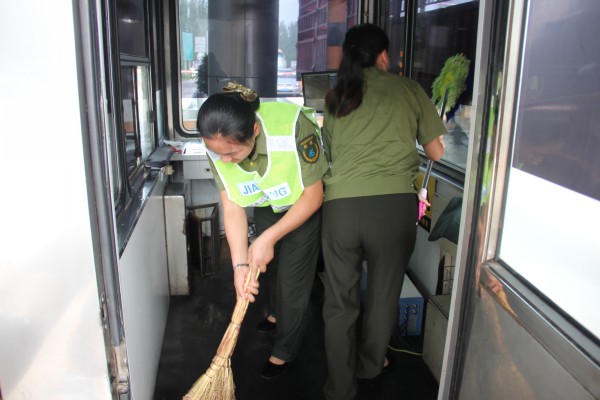 近日,由于暑期車流量激增,收費(fèi)一線環(huán)境衛(wèi)生的保持成了一大難題。沙城站黨支部書記張麗芝帶領(lǐng)支部委員和其他黨員領(lǐng)導(dǎo)干部到收費(fèi)一線帶頭清理環(huán)境衛(wèi)生,擦臺(tái)面、撿垃圾、清掃島頭,專撿臟活累活干,以實(shí)際行動(dòng)踐行黨的宗旨,保持公仆情懷,牢記共產(chǎn)黨員永遠(yuǎn)是勞動(dòng)人民的普通一員,密切聯(lián)系群眾,全心全意為人民服務(wù)。黨員鄭立、胡彥梅忙碌的身影穿梭在收費(fèi)亭與收費(fèi)車道之間,累得滿頭大汗,充分發(fā)揮了黨員的先鋒模范作用。收費(fèi)班長(zhǎng)薛伯東、機(jī)電維護(hù)員王嶸,收費(fèi)員李巖、佟桂軍、譚鵬鵬等同志,也都爭(zhēng)先恐后地?fù)屩。?jīng)過三個(gè)多小時(shí)的奮戰(zhàn),收費(fèi)亭、收費(fèi)廣場(chǎng)、安全島頭、排水渠等部位得到了全面徹底的清理,站區(qū)面貌煥然一新。此時(shí),大家早已汗流頰背,卻沒有一個(gè)人喊苦喊累,看著干凈整潔的站區(qū)環(huán)境欣慰地笑了,因?yàn)槟転檫^往司乘提供干凈整潔、安全暢通的行車環(huán)境是我們最大的快樂,能夠?qū)崒?shí)在在地為司乘提供優(yōu)質(zhì)服務(wù)是黨員領(lǐng)導(dǎo)干部和職工們共同的心聲。