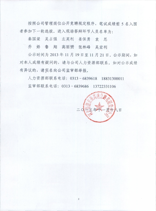 管理崗位公開競聘筆試成績及入圍名單公示