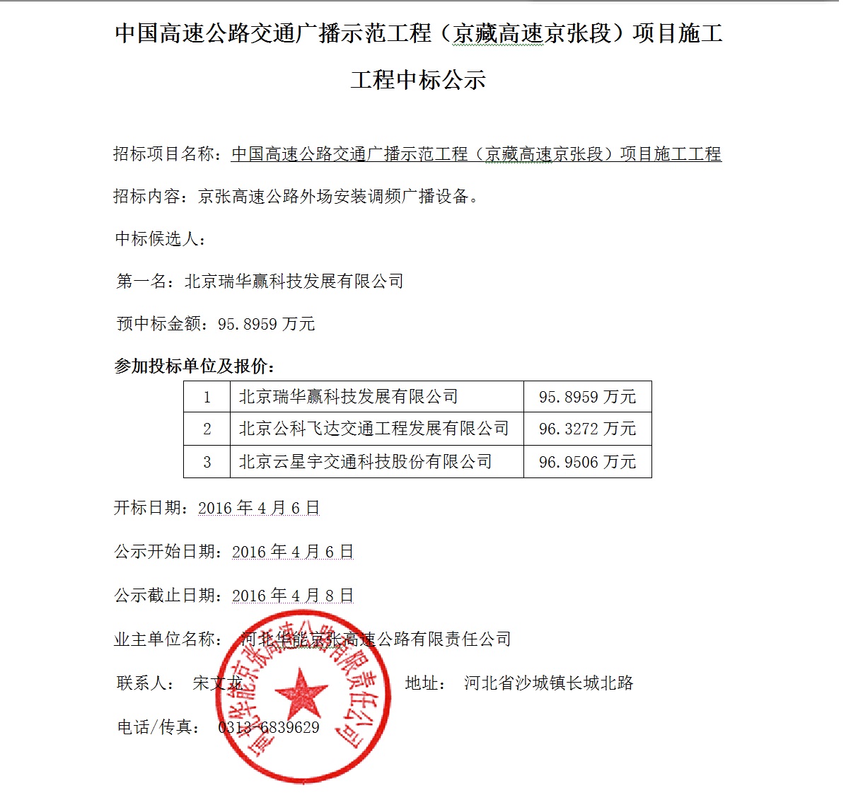 高速廣播工程中標公示
